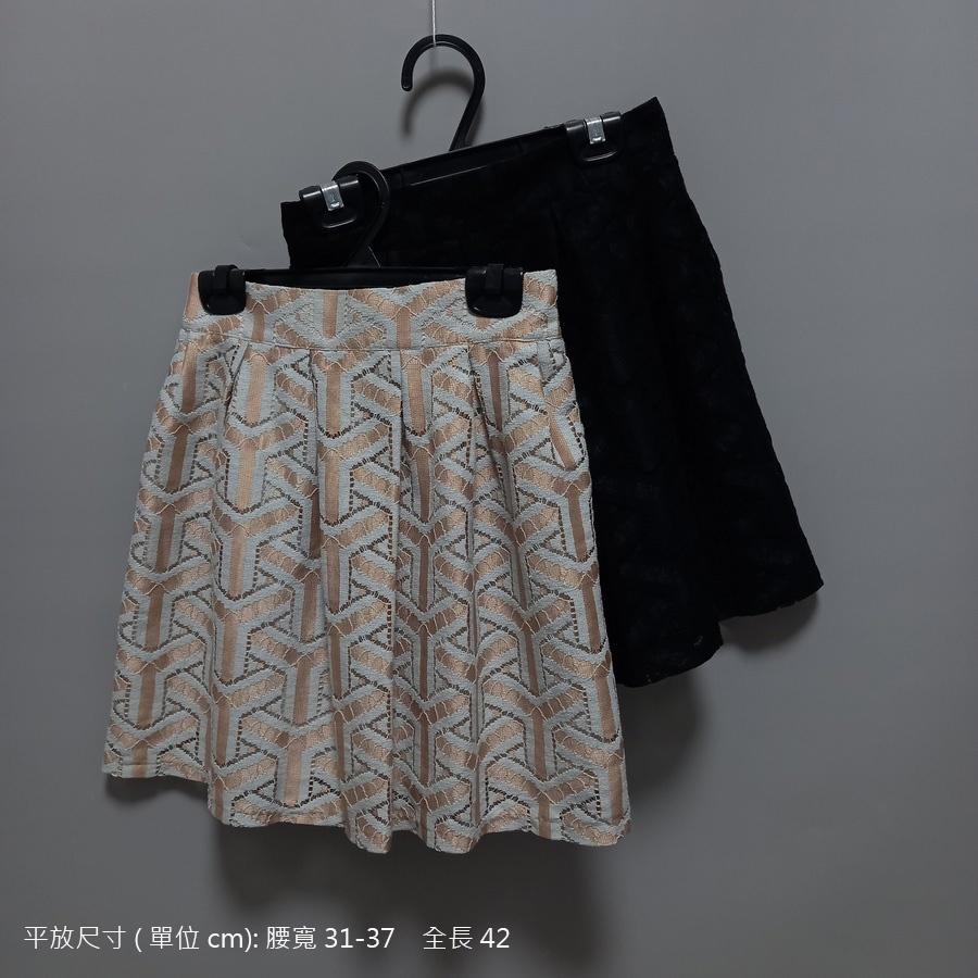 220902淺褐色粉藍色Y線條黑色鏤空金屬拉鍊鬆緊短裙二手