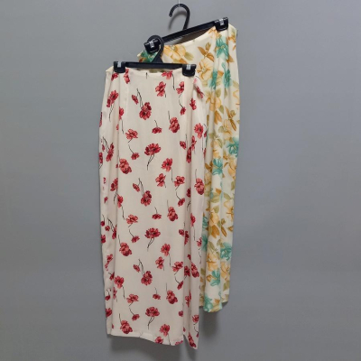 220902舊古著雙面穿淡黃色粉藍綠橘花白底紅花朵A字長裙二手