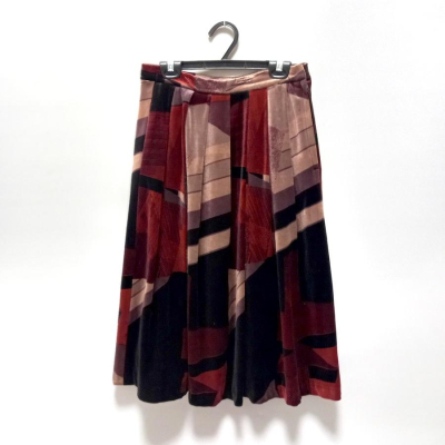 220902酒紅褐色黑色不規則線條長裙有口袋二手