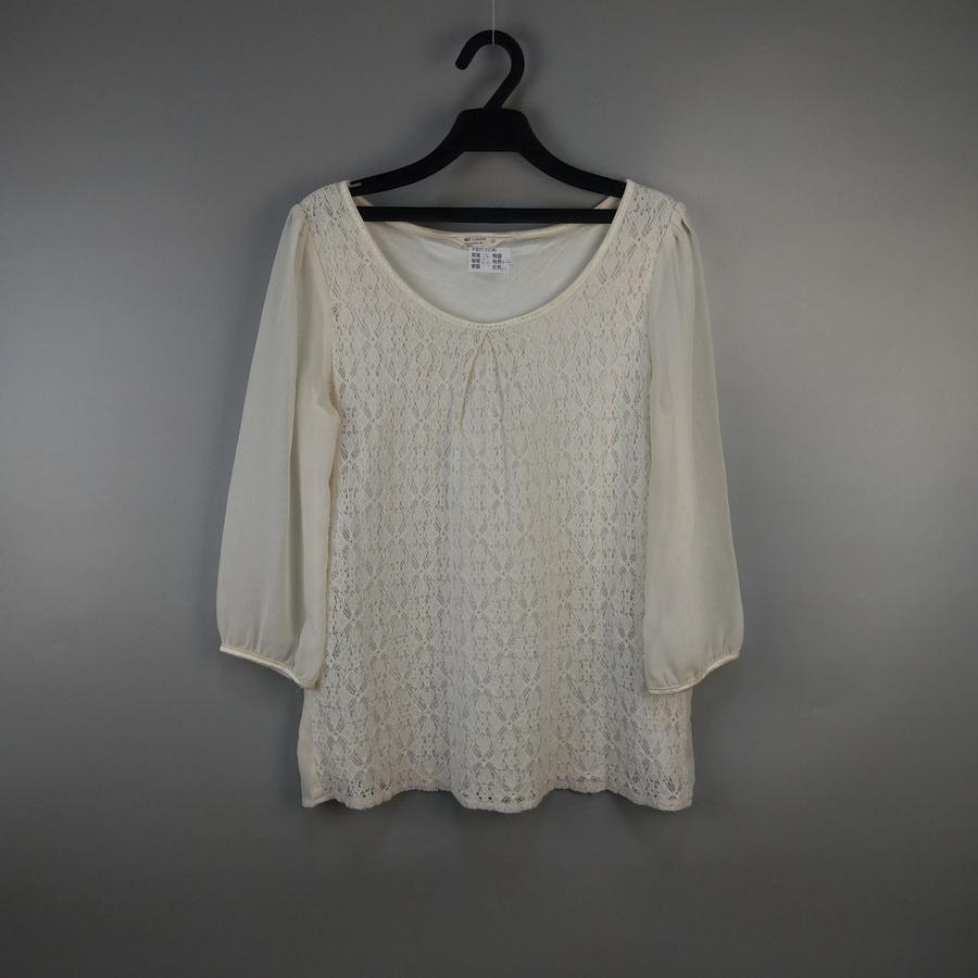 220902品牌NET雪紡紗拼接蕾絲圖樣長袖寬版上衣 8 二手