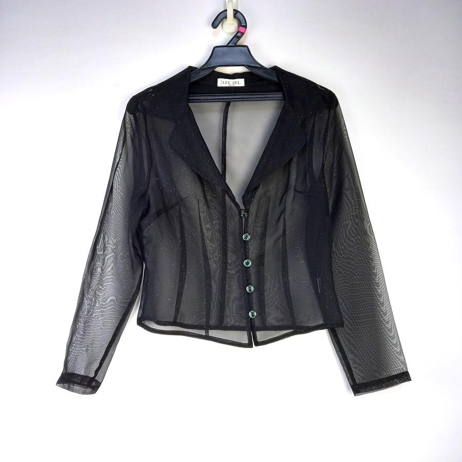 220802LEE ZEL黑色透膚腰身短版長袖翻領襯衫上衣二手