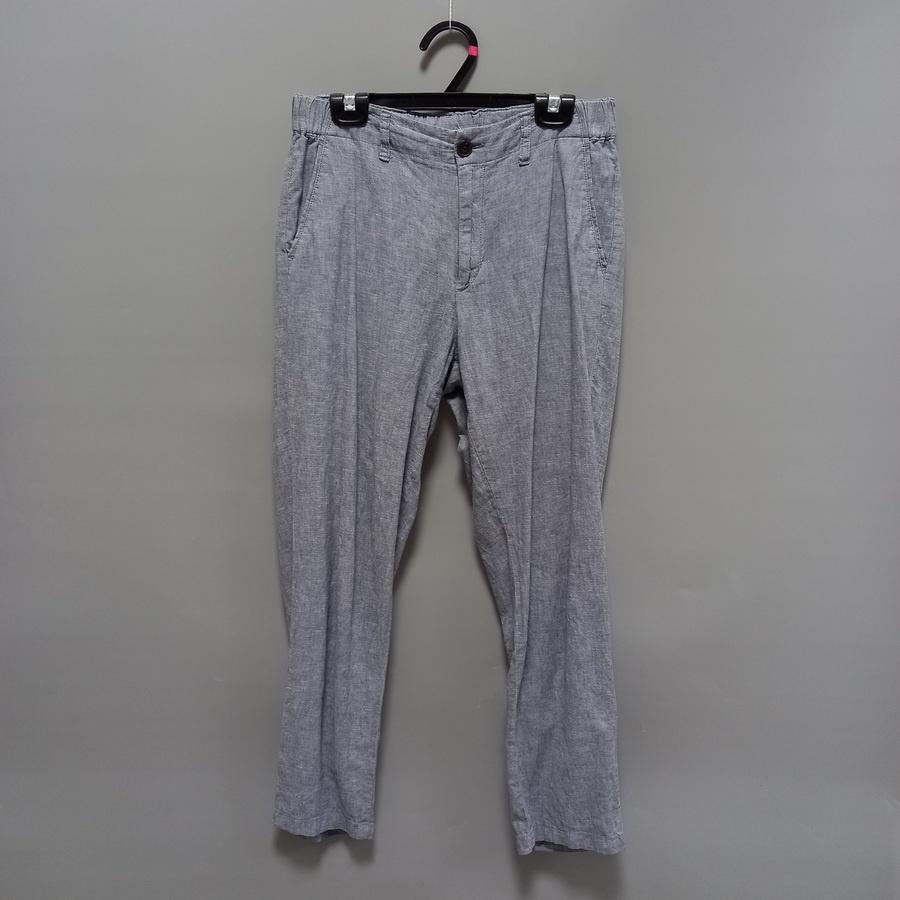 220902品牌UNIQLO亞麻棉質藍灰色鬆緊腰圍長褲M二手
