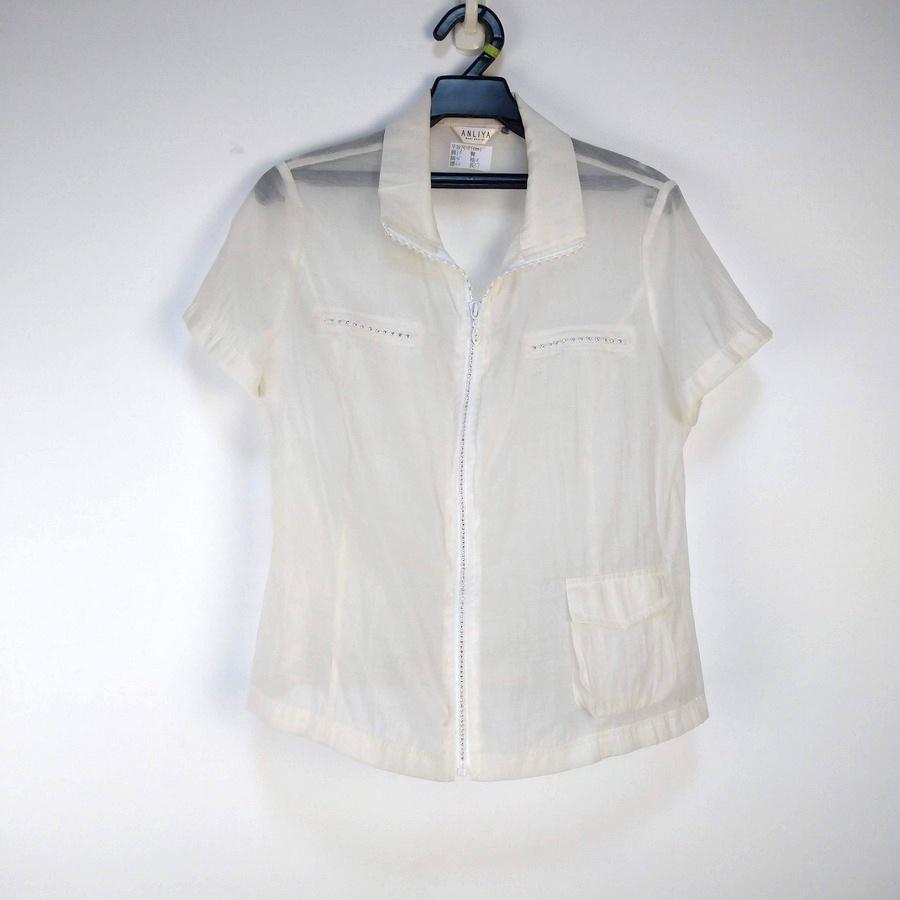 220801品牌ANLIYA白色透膚水鑽拉鍊上衣 二手