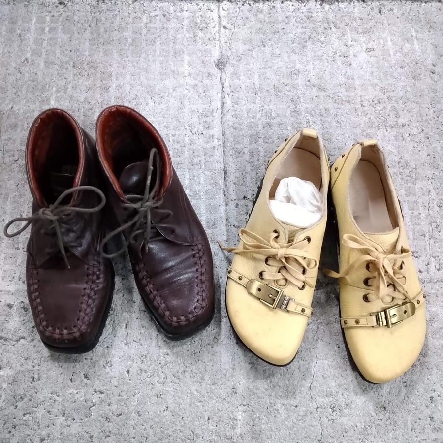 220301真皮褐色短靴 黃色真皮休閒鞋 二手
