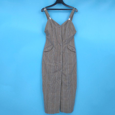 211204舊愛古著格紋愛心鏤空鈕扣背心吊帶窄裙長洋裝二手