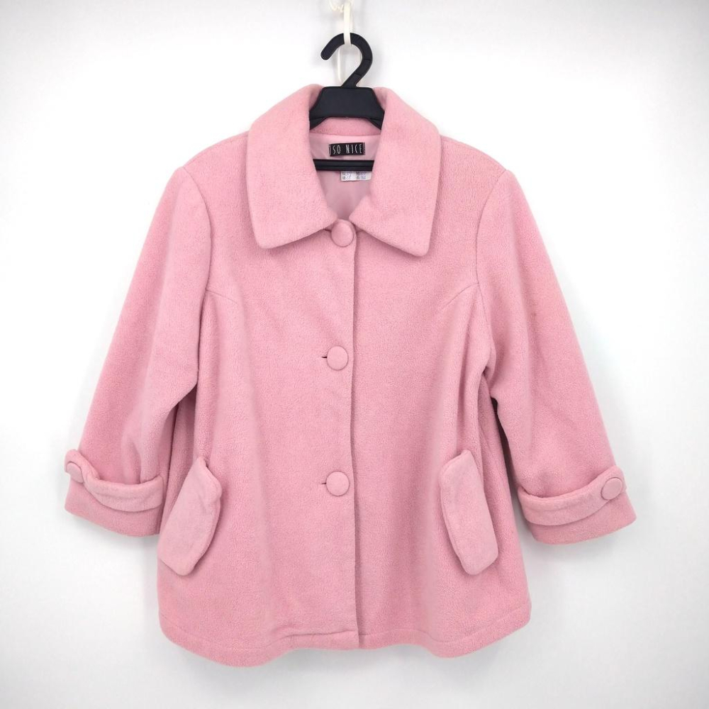 220103SO NICE粉紅色毛料寬版口袋秋冬大衣二手 有處輕微泛黃