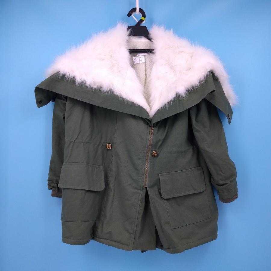 211204墨綠色內裡刷毛浮誇毛毛領帽子外套二手