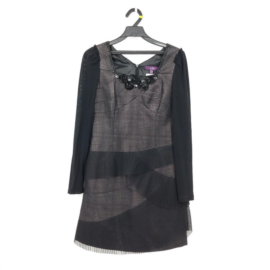 211104品牌S&R莎蕾黑色格子亮片花朵洋裝洋裝小禮服宴會服M二手