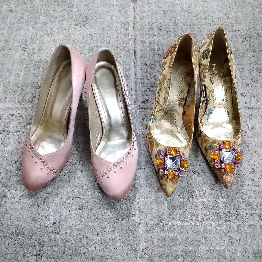 220301cumar粉色緞面圓頭高跟鞋6號半二手 enzo angiolini電繡花朵水鑽尖頭高跟鞋 晚宴鞋婚宴鞋