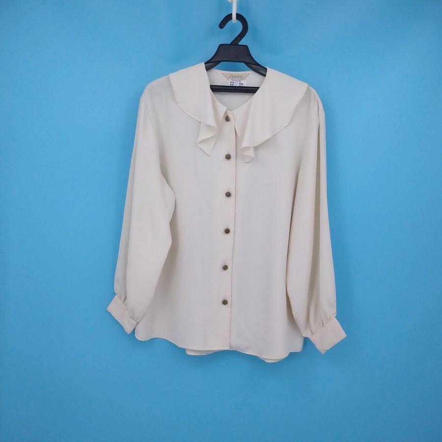 211202舊愛古著日本製白色圓領抓皺襯衫上衣二手