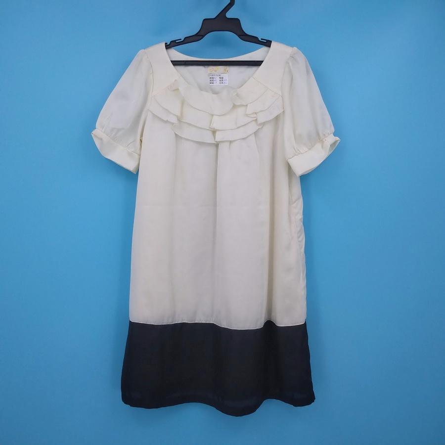 211202白色荷葉領圓領拼接黑色下擺娃娃裝洋裝上衣二手