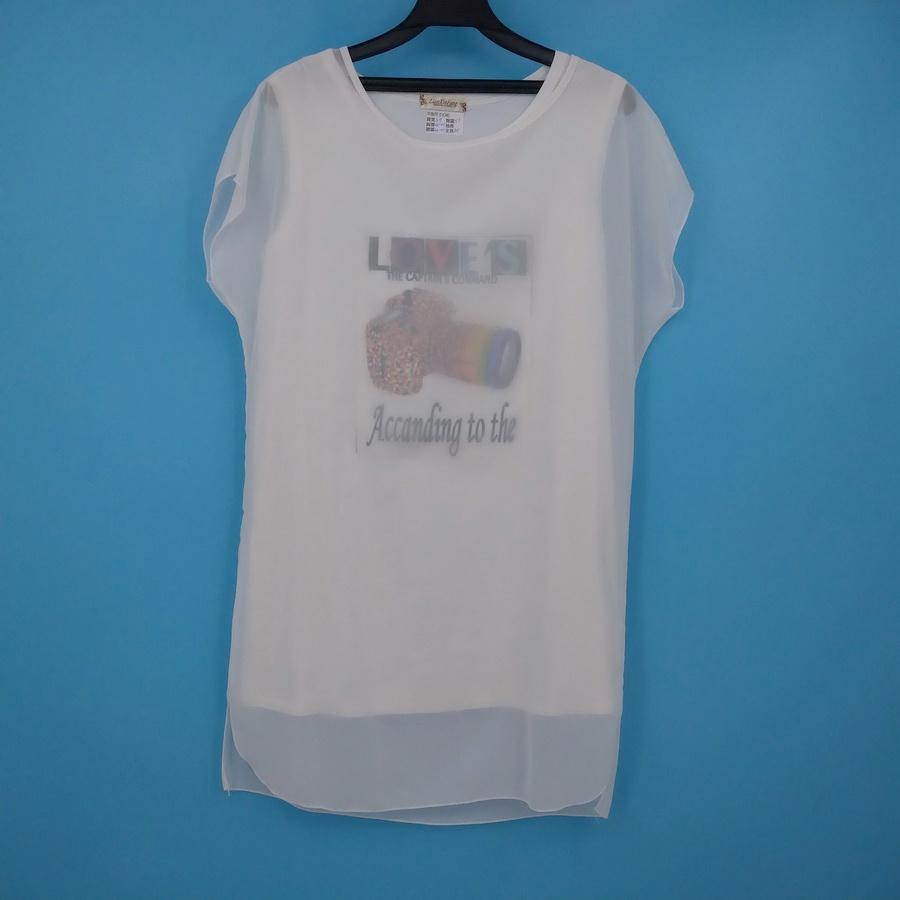 211202白色假兩件相機圖樣雪紡紗上衣二手