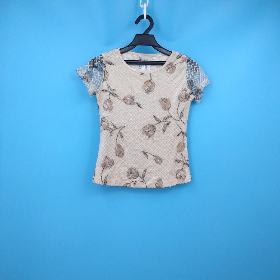211202白色鬱金香花朵貼身白色格紋上衣二手