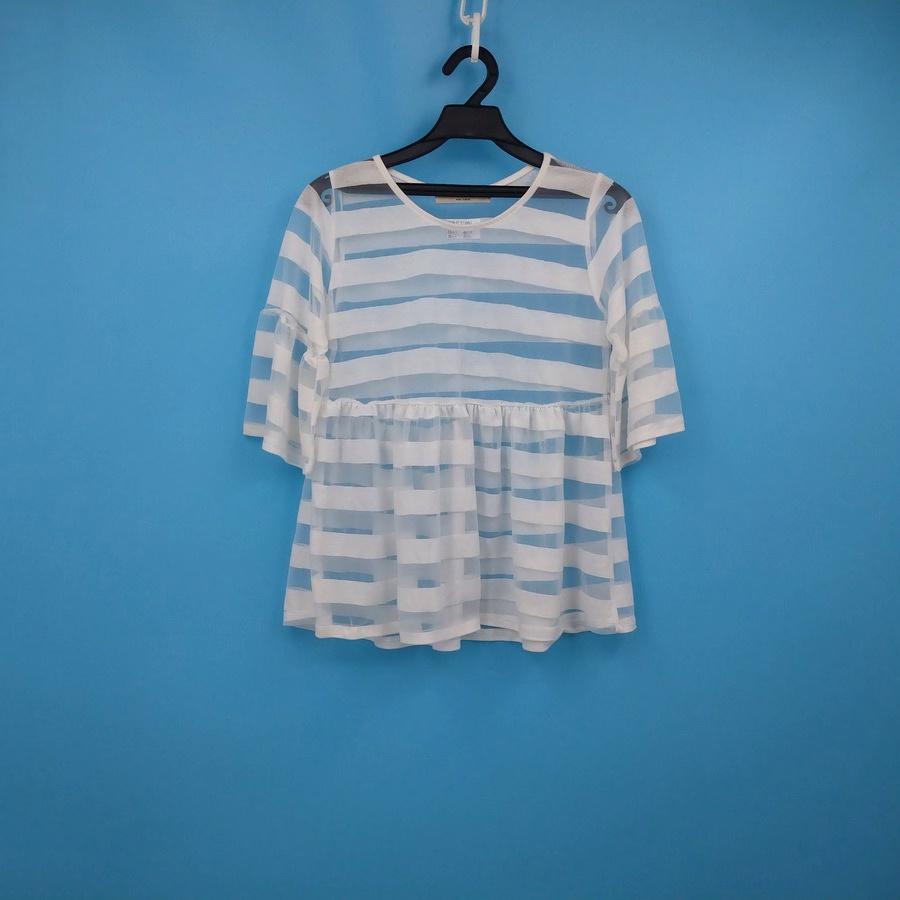 211202韓版韓製白色透膚寬鬆五分袖上衣二手