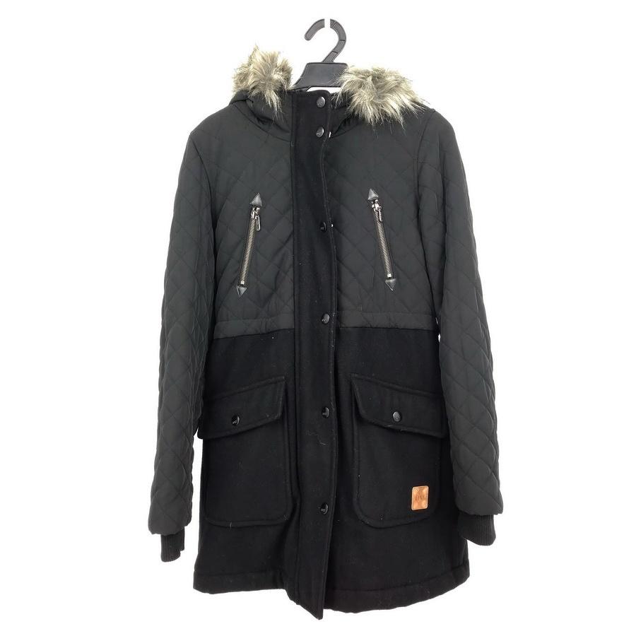 211104ROXY黑灰色內裡毛毛連帽長版外套M上衣二手