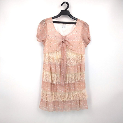 210902淡粉紅小羊圖樣雪紡紗洋裝二手