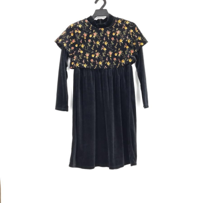 211204舊愛古著黑色燈絨絨玫瑰花裝飾短版上衣假兩件洋裝 大女童 庫存品