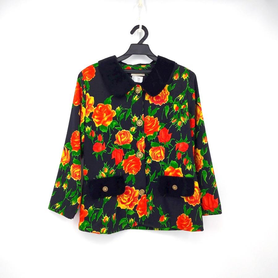 211004舊愛古著紅橘玫瑰花圓領上衣二手