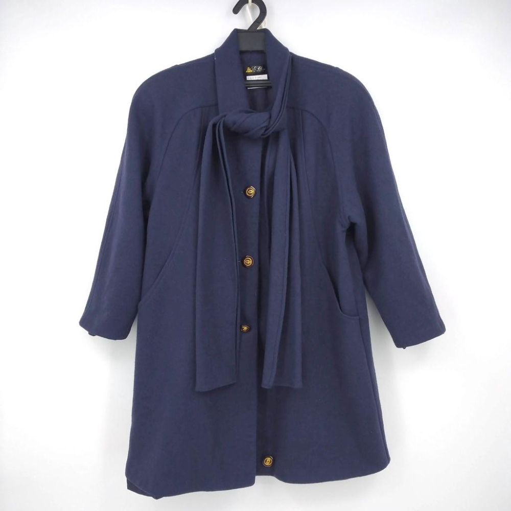 220103舊愛古著藍灰色毛料寬版秋冬大衣二手