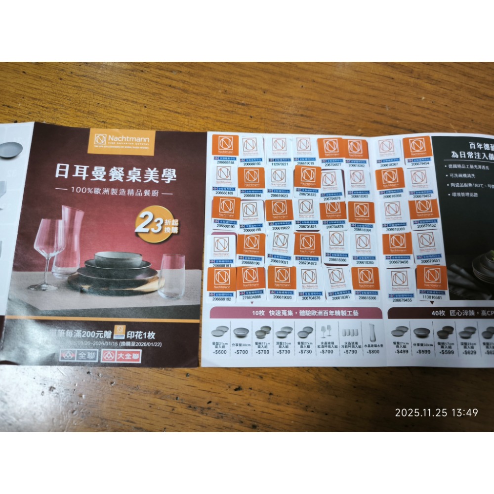 全聯 大全聯 點數 印花 Nachtmann 日耳曼餐桌美學 40點35元 奈赫曼