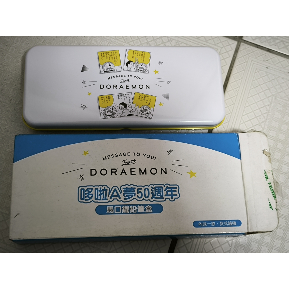 全新久放-哆啦A夢50週年馬口鐵鉛筆盒 黃白款