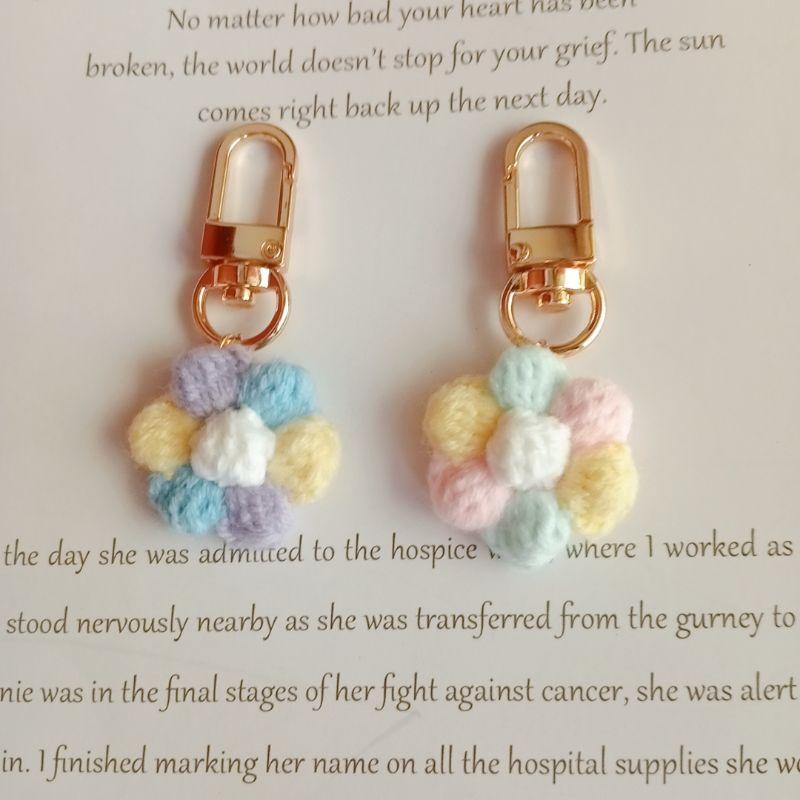 💟雙甯小舖💟 小花朵 airpods 手工編織 吊飾 雙色 鑰匙圈 泡芙花