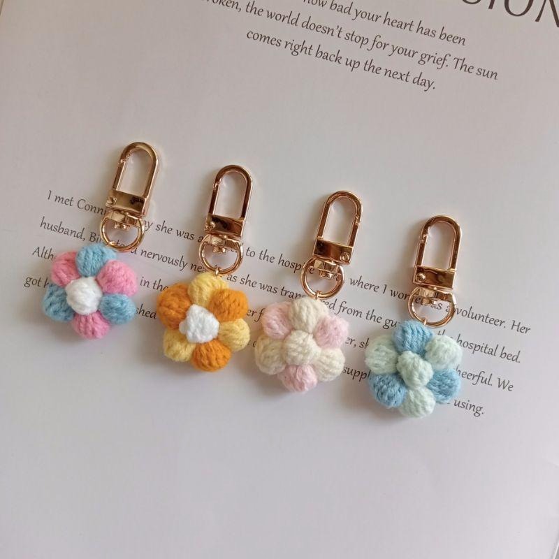 💟雙甯小舖💟 小花朵 airpods 手工編織 吊飾 雙色 鑰匙圈 泡芙花