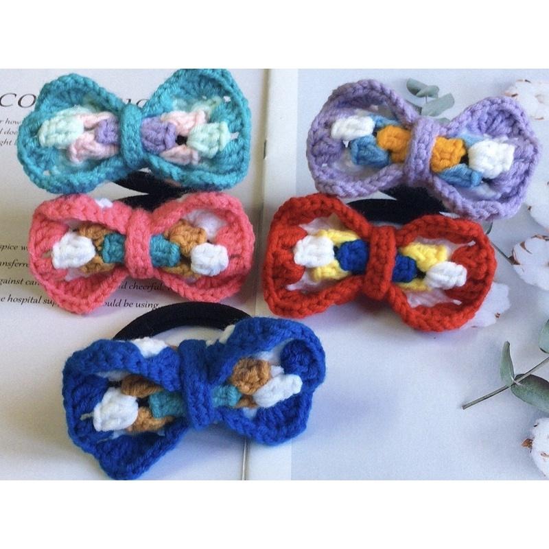 💟雙甯小舖💟 手工編織 祖母方格蝴蝶結 髮圈 毛線編織 髮飾 手作 針織髮圈