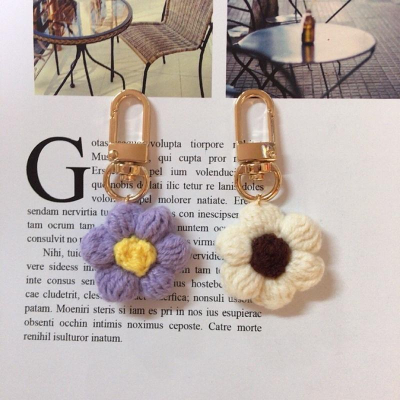 💟雙甯小舖💟 小花朵 米白 紫色 airpods 手工編織 吊飾 鑰匙圈