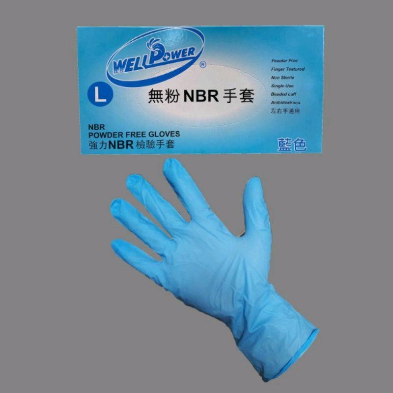 NBR手套 nbr手套 無粉手套 乳膠手套 9吋手套 well power 3.5g藍色 耐油手套 手套