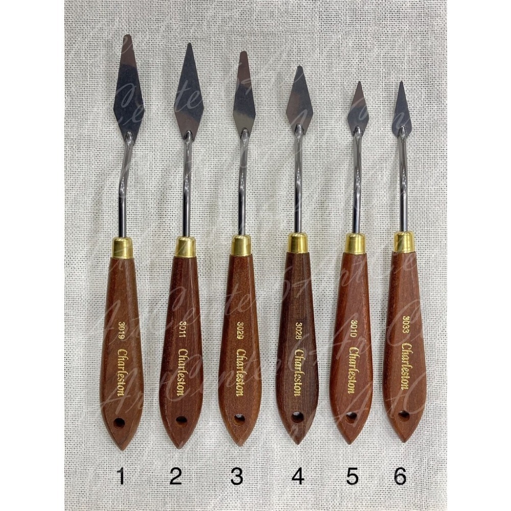 透過不同形狀的畫刀可進行點、拖、抹、刮、堆、劃等技法