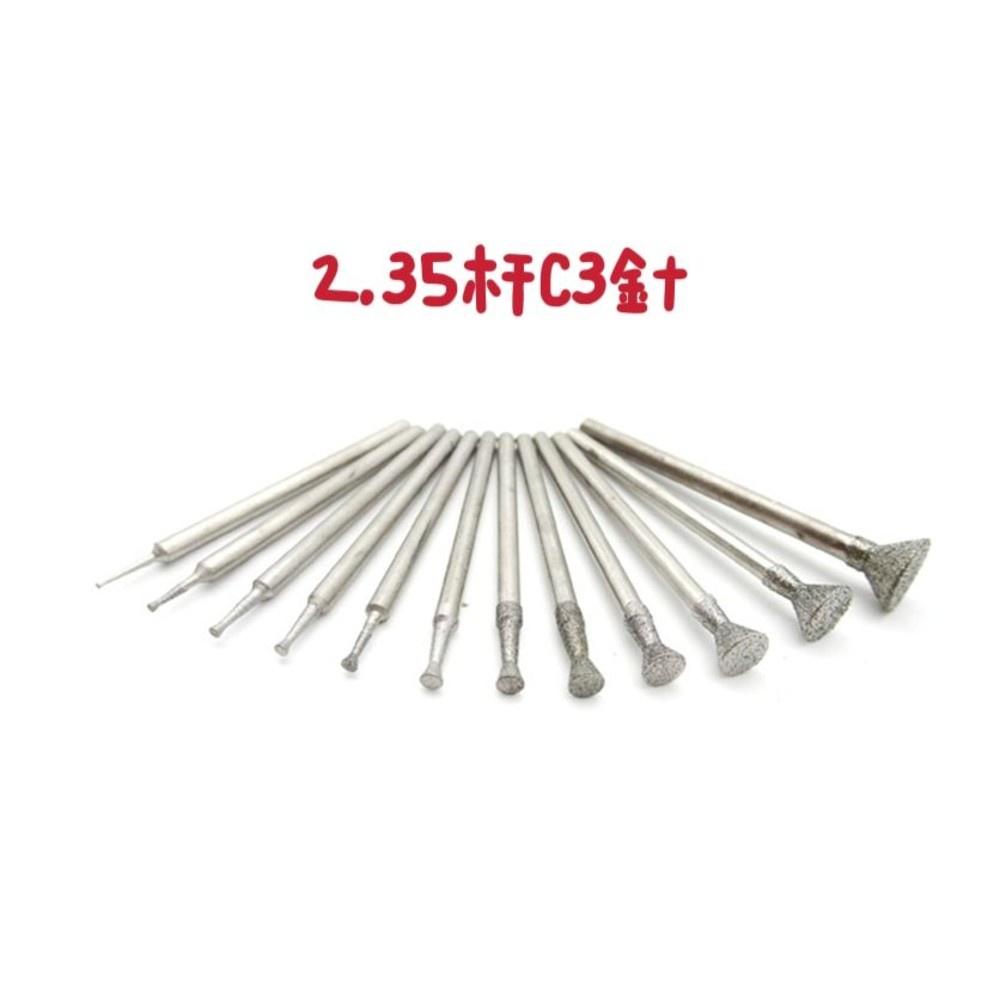 【七彩翡翠】2.35柄 C3針 80目 高腳 三腳釘 雕刻斜切面 金剛石磨頭 鑽石磨頭 金剛砂磨頭 翡翠 水晶 玉石