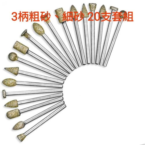【七彩翡翠】3柄 金剛砂 金剛石 磨頭 粗砂 80目 細砂 120目 翡翠 水晶 打磨 雕刻 20支套組