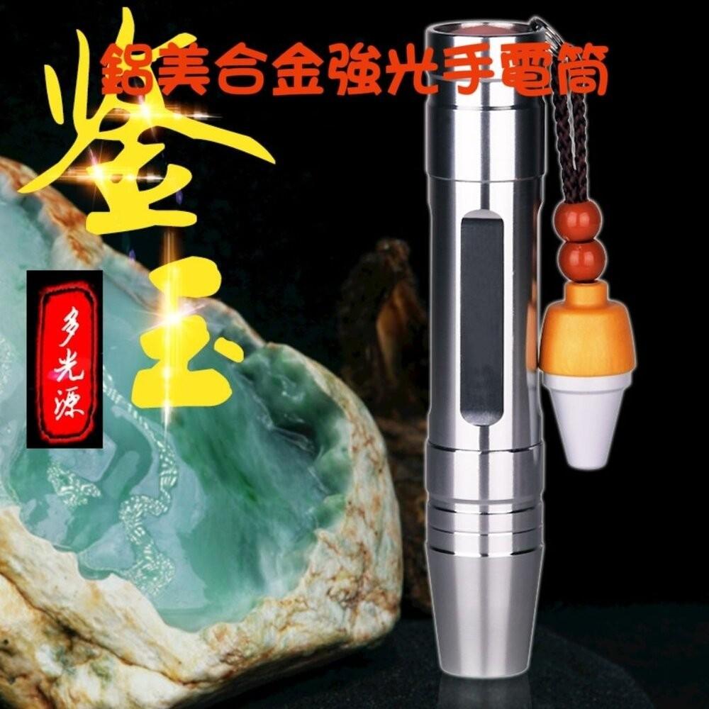 【七彩翡翠】04077 鋁合金 三光源 強光 玉石 手電筒 白光 黃光 紫光365 鑑定 防偽
