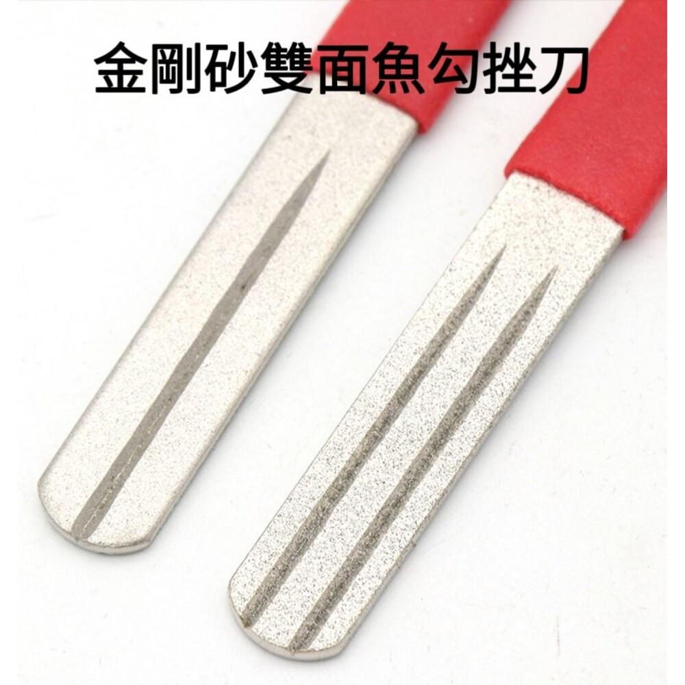規格尺寸: 全長:約101mm 寬度:約12mm 厚度:約2.5mm 雙面金剛砂 雙勾槽為180目 單勾槽為400目