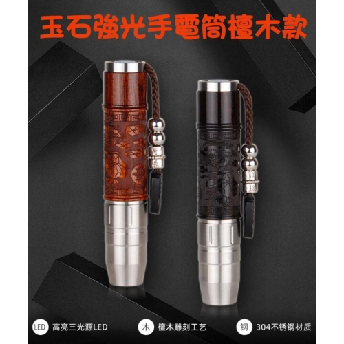【七彩翡翠】04071 玉石 強光 手電筒 檀木款 翡翠 水晶 探照 鑑定 錢鈔 防偽