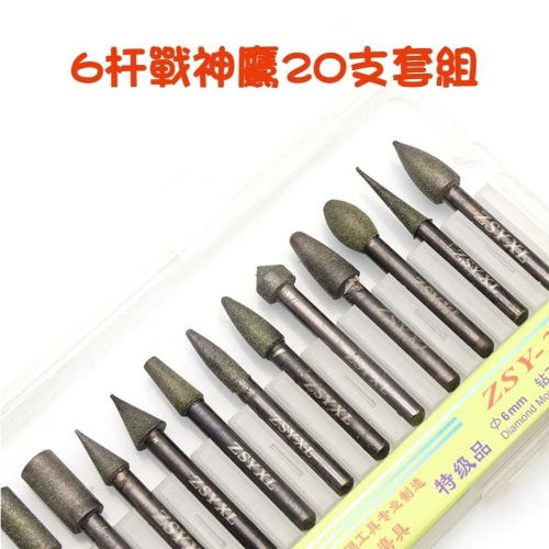 【七彩翡翠】6柄 戰神鷹 120目 金剛砂 磨頭 翡翠 玉石 水晶 雕刻 打磨 套組 20支