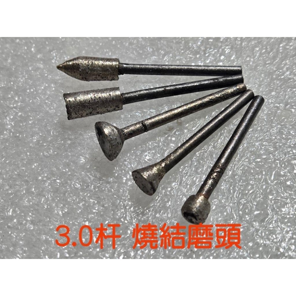 規格尺寸: 柄杆:3.0mm 3.0杆子彈型燒結磨頭 全長:約51mm左右 燒結磨頭長度約17.6mm 燒結磨頭長度約6.8mm 3.0杆圓柱型燒結磨頭 全長:約48mm左右 燒結磨頭長度約15.0mm 燒結磨頭長度約6.7mm 3.0杆E針型燒結磨頭 全長:約40.6mm左右 燒結磨頭長度約4.8mm 燒結磨頭長度約9.8mm 3.0杆喇叭型燒結磨頭 全長:約41.4mm左右 燒結磨頭長度約7.0mm 燒結磨頭長度約6.9mm 3.0杆圓球型燒結磨頭 全長:約41mm左右 燒結磨頭長度約6.3mm 燒結磨頭長度約6.4mm 燒結磨頭製作較耐用,整個燒結磨頭都可以使用