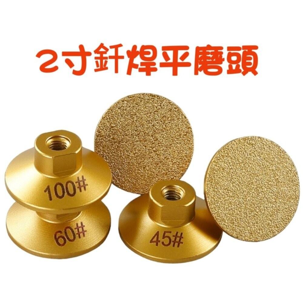 【七彩翡翠】2吋 50mm 釺焊平磨頭 M10 M14 夾頭 45目 60目 100目 砂輪機 手砂輪