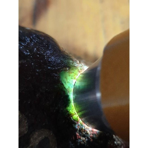 尺寸:長108*寬61*高63mm(不規則取最大值) 重量:720g 會卡紅腊殼本身就有機會賭色原石週邊佈滿癬,我們以色料的價格收來的,打燈感覺有藍花表現,賭藍花或綠花進去,有興趣的石友可以試試!