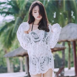 【QQSHOP】L0100 蕾絲 鏤空 繡花 遮陽 防曬 罩衫 披肩 比基尼 出國 渡假