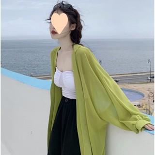 【QQSHOP】L00113 長版 雪紡 薄外套 遮陽 防曬 批肩 休閒 渡假 細肩帶 比基尼