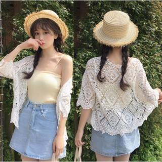 【QQSHOP】L00061 防曬 罩衫 披肩 韓版 鏤空 蕾絲 比基尼 泳裝 渡假 拍照