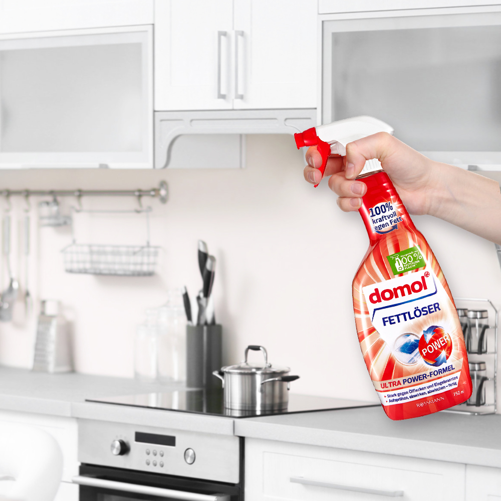 將產品噴灑於油汙表面,靜置數分鐘後,以濕布或海棉擦拭並沖洗乾淨即可。如有頑固汙垢,請視情況增加靜置時間。