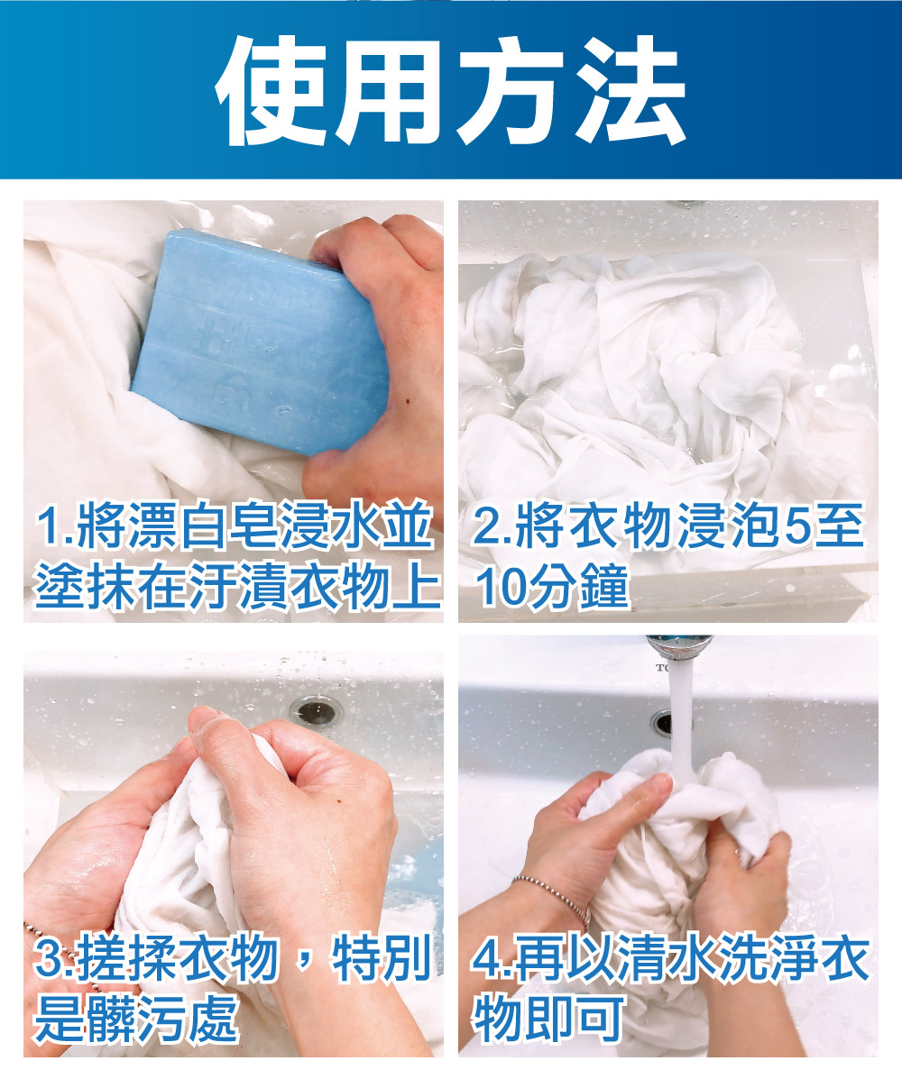 👌使用方法:沾水搓揉起泡後塗抹於欲清洗物,再以清水洗淨即可。欲加強漂白之處,請金抹後靜待3~5分鐘,效果更佳。