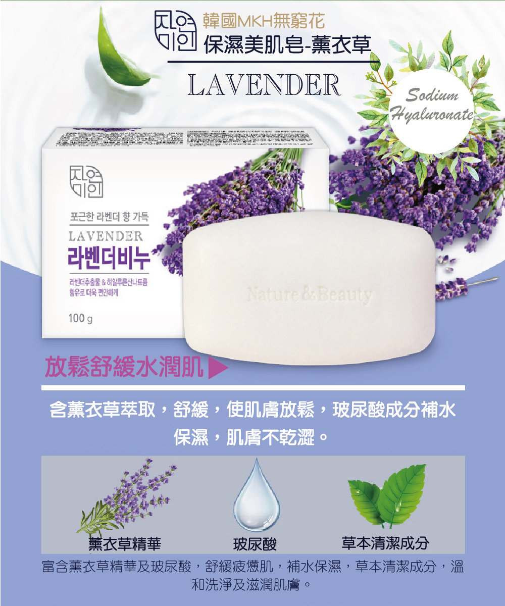 產品:韓國 MKH 無窮花 補水保濕 韓國 保濕美肌皂【薰衣草】香皂 (100克)