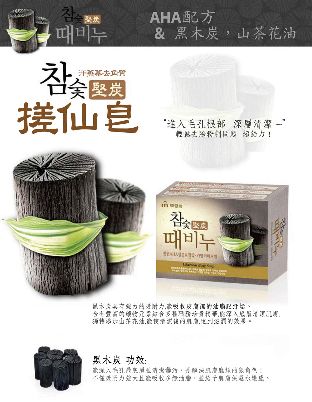 產品:韓國 MKH 無窮花 【深層清潔】韓國汗蒸幕去角質搓仙皂【黑木炭】香皂