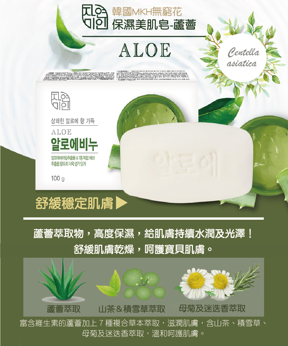 產品:韓國 MKH 無窮花 補水保濕 韓國 保濕美肌皂【蘆薈】香皂 (100克)