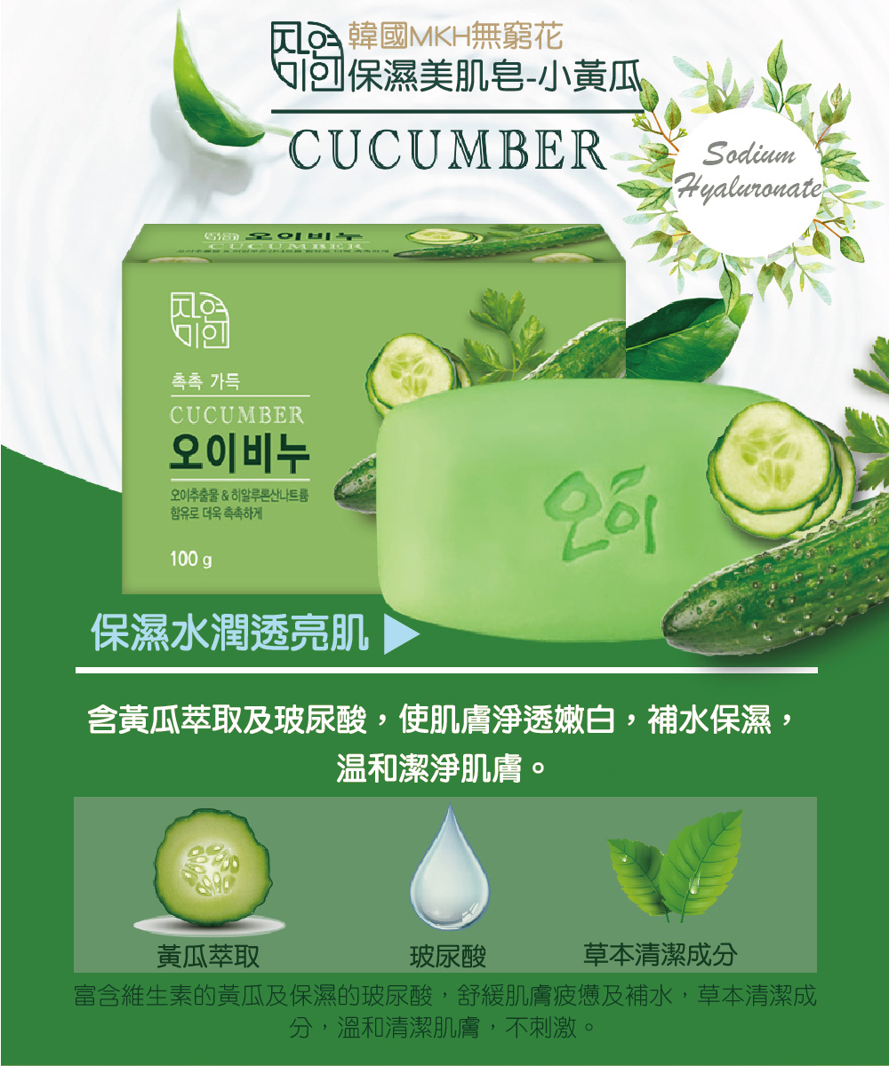 產品:韓國 MKH 無窮花 補水保濕 韓國 保濕美肌皂【小黃瓜】香皂 (100克)