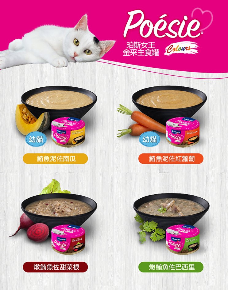 【產品介紹】:德國【Vitakraft】 poesie 珀斯女王金采 【幼貓鮪魚佐紅蘿蔔】 貓罐頭 80g